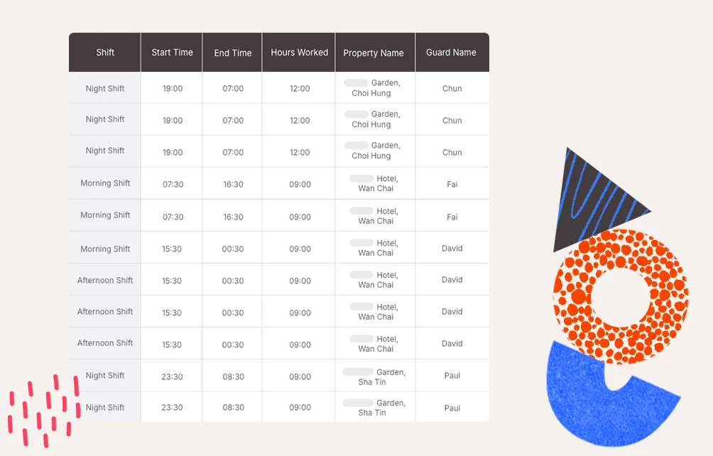 Managing rosters across estates and roles such as security rotations, cleaning shifts, maintenance crews, can mean hundreds of shift patterns. When rosters and clock-in records are separated, data sync becomes slow, error-prone, and gives no real-time visibility into who's actually on-site.