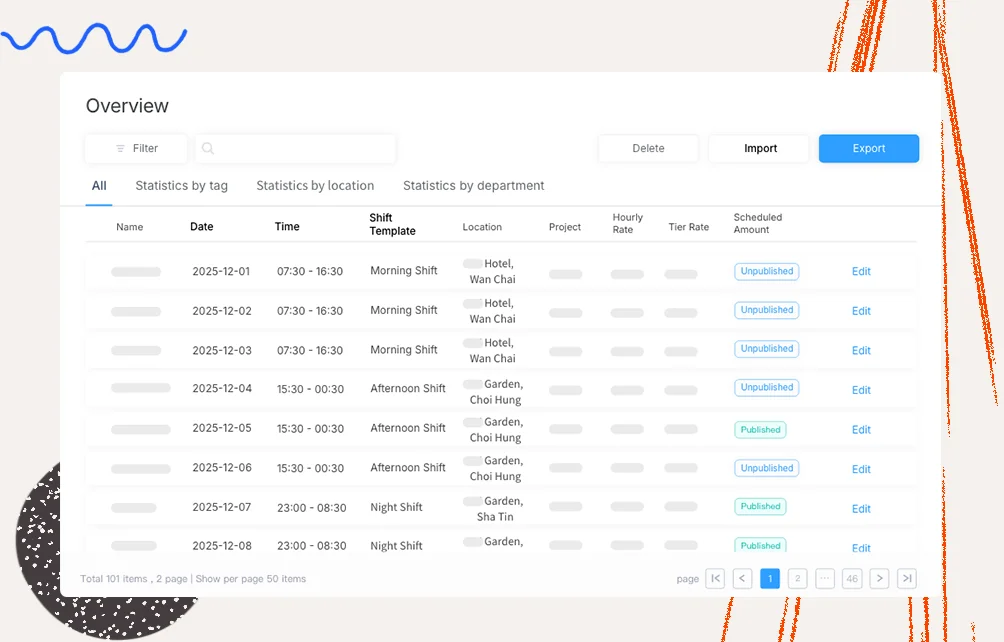 Fully aligned with Hong Kong's Employment Ordinance and industry regulations, Workstem delivers smart scheduling, multi-mode attendance, automated payroll, cost analysis, and a custom "Safety Update" module all in one platform.