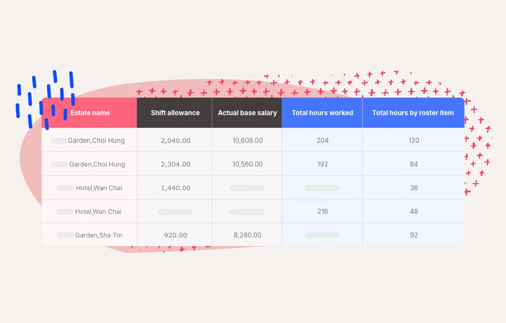 On top of base salary, staff may be entitled to night shift, position, and typhoon duty allowances. Labour costs also need to be split across estates, projects, or clients which comes as a heavy manual process that makes accurate cost analysis difficult.